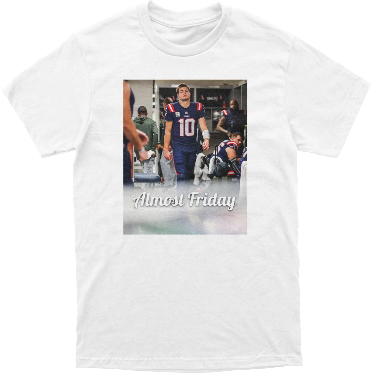 Almost Friday Drake Maye Locker Room - White / Small is backordered and will ship as soon as it is back in stock.