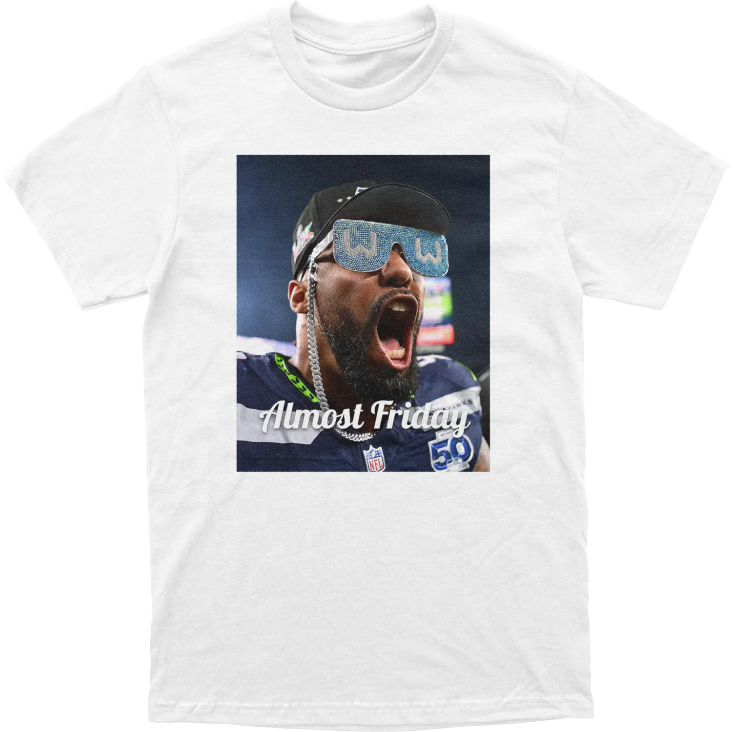 Almost Friday W Glasses Seahawks Tee - White / Small is backordered and will ship as soon as it is back in stock.