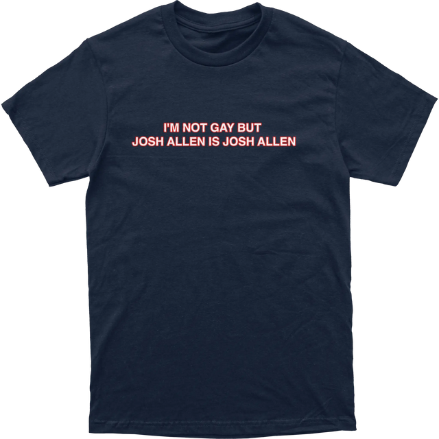 I’m Not Gay But Josh Allen Is Josh Allen Tee - Navy / Small is backordered and will ship as soon as it is back in stock.