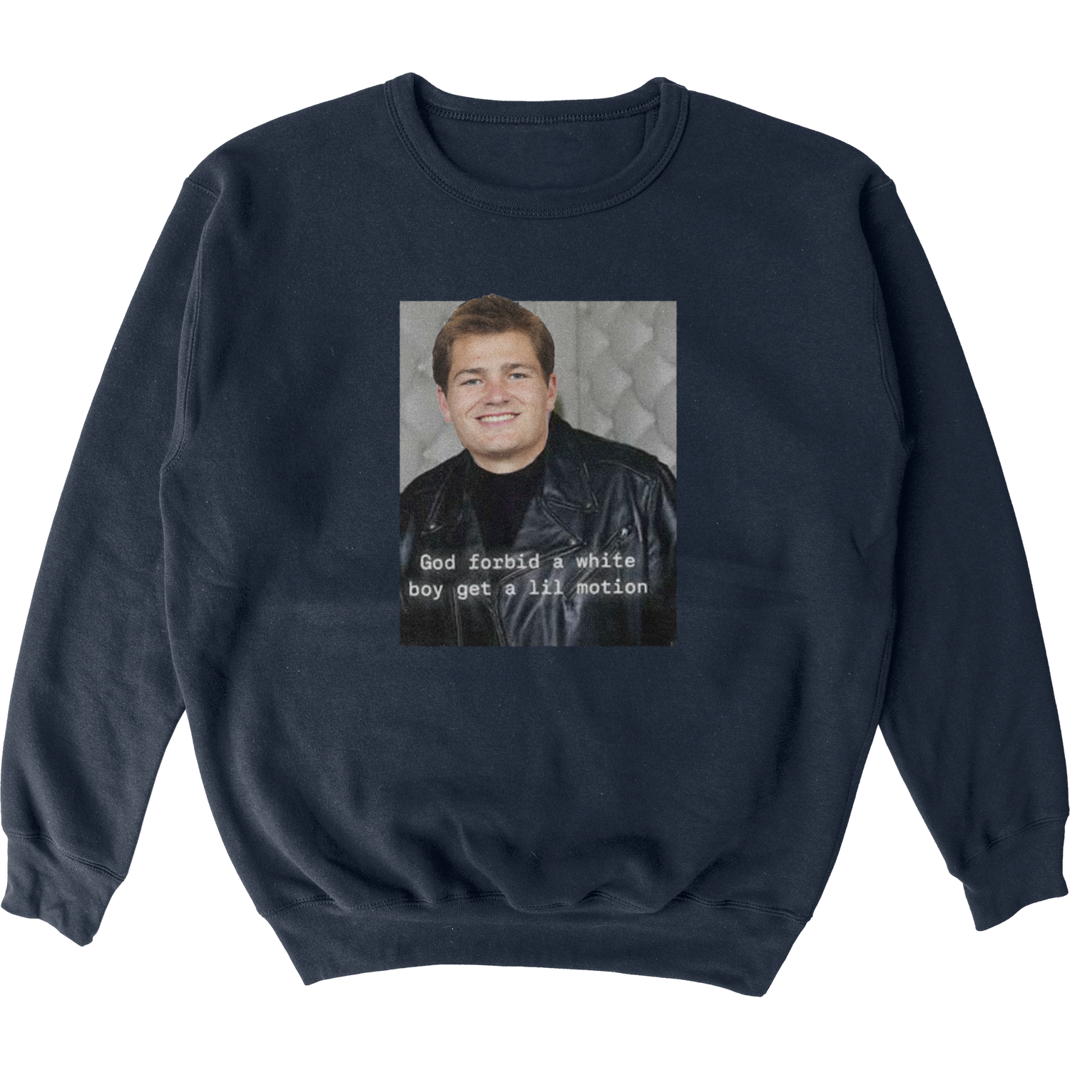 Drake Maye Motion Crewneck - Small / Navy is backordered and will ship as soon as it is back in stock.