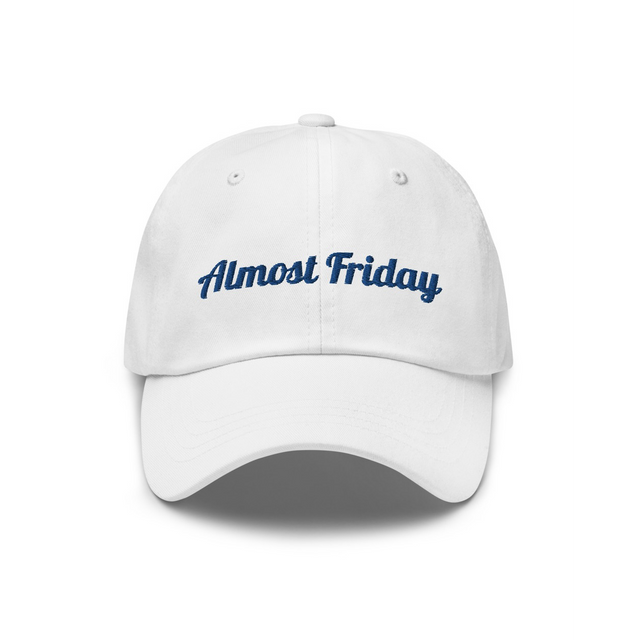 Almost Friday Dad Hat - White is backordered and will ship as soon as it is back in stock.