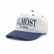 Almost Friday Snapback Bar Hat - White with Navy is backordered and will ship as soon as it is back in stock.