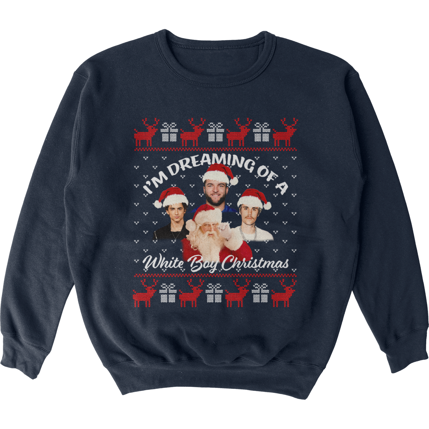 White Boy Christmas Tacky Sweater - Small / Navy is backordered and will ship as soon as it is back in stock.
