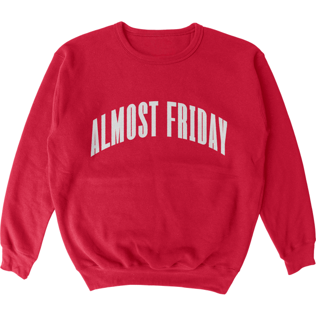 Almost Friday Arch Crewneck - Small / Red is backordered and will ship as soon as it is back in stock.
