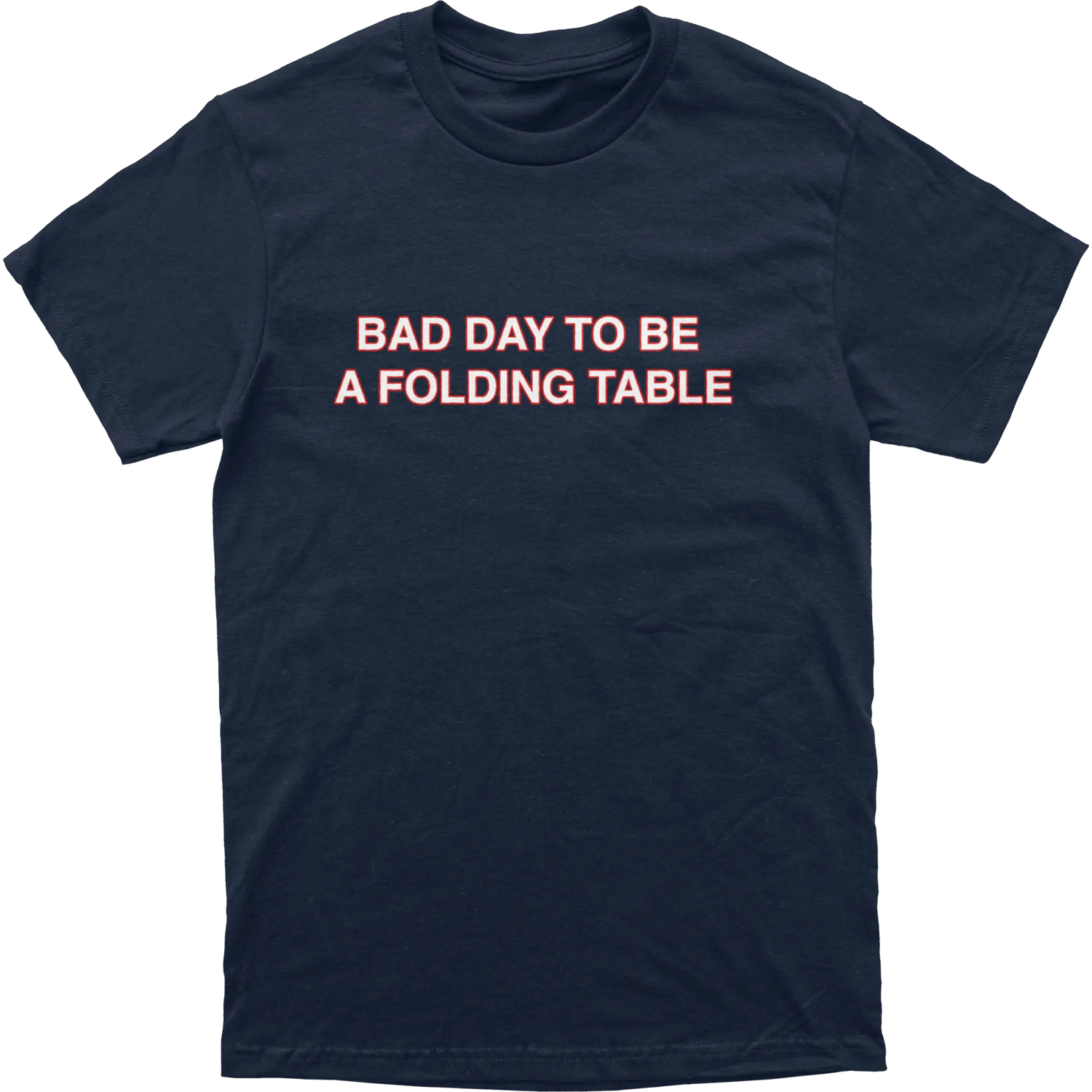 Bad Day To Be A Folding Table Tee - Navy / Small is backordered and will ship as soon as it is back in stock.