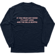 If You Hear Any Noise Longsleeve - Navy / Small is backordered and will ship as soon as it is back in stock.