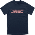 If You Hear Any Noise Tee - Navy / Small is backordered and will ship as soon as it is back in stock.